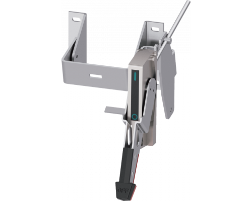 Элемент управления представляет собой полный комплект, включающий хромированную стальную рукоятку NEMA 4/4X. Рукоятка имеет два положения: черный цвет соответствует выключенному состоянию, красный – включенному. Предусмотрен переключающий механизм, предназначенный для выкатных устройств с ходом от 200 до 400 мм. Данный элемент управления является принадлежностью для устройств 3va5 125.
