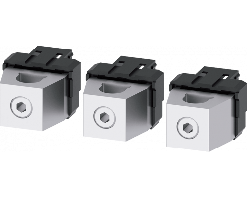 Клемма предназначена для подключения проводов круглого сечения из меди. Комплект включает в себя три штуки. Данное изделие является принадлежностью для шкафов управления 3va6 150/250.