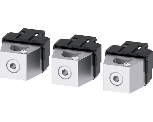 Клемма предназначена для проводов круглого сечения из меди. В комплекте имеется отвод напряжения для вспомогательных проводов, их количество – 3 штуки. Данный продукт является принадлежностью для серии 3va6 150/250.