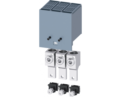 Клемма предназначена для круглого провода и имеет вспомогательную клемму для трех проводов. Она является принадлежностью для втычного цоколя или выкатной корзины типа 3va1 160.
