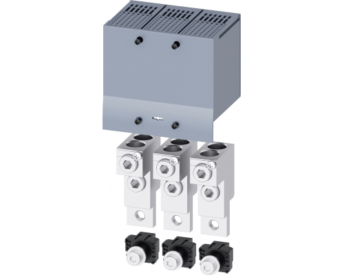 Клемма предназначена для проводов круглого сечения 2 кабеля. Предусмотрен отвод напряжения для вспомогательных проводов – 3 штуки. Применяется как принадлежность для устройств 3va6 150/250.
