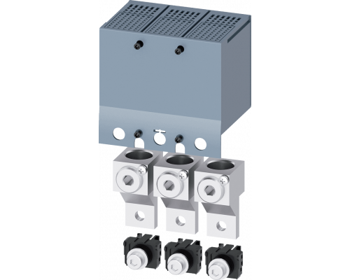 Клемма предназначена для проводов круглого сечения и рассчитана на один провод. В комплекте три штуки, включая удлиненную клеммную крышку с отверстиями для контроля напряжения. Данное изделие является принадлежностью для оборудования 3va5 250.