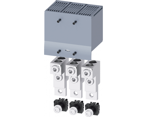 Клемма предназначена для проводов круглого сечения 2 кабеля. В комплекте предусмотрен отвод напряжения для вспомогательных проводов, их количество – 3 штуки. Данный продукт является принадлежностью для оборудования 3va5 250.