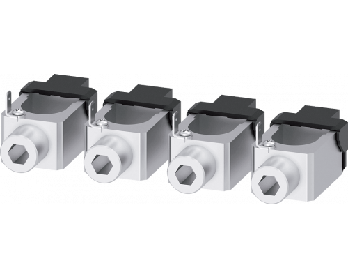 Клемма предназначена для проводов круглого сечения из меди. В комплекте имеются отводы для подключения вспомогательных проводов – их количество составляет 4 штуки. Данный продукт является принадлежностью для устройств серии 3va6 150/250.