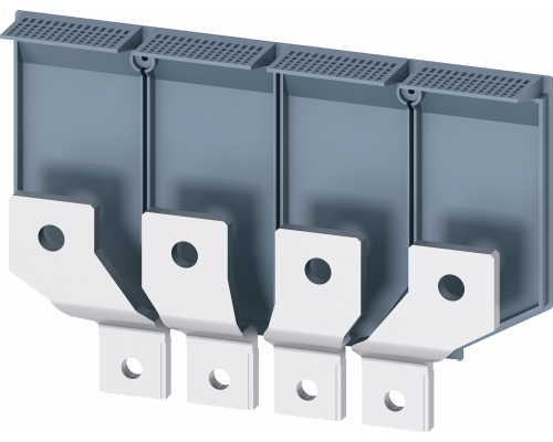 Предлагается расширительная соединительная пластина. Она предназначена для использования с устройствами 3VA5 и 3VA6. В комплекте четыре штуки. Является принадлежностью для шкафов управления, рассчитанных на номинальные токи 400/600.
