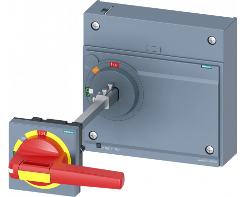 Привод предназначен для аварийного отключения и оснащен блокировкой двери. Соответствует классу защиты IP65. Привод является принадлежностью для шкафов 3VA 15/25 1000.