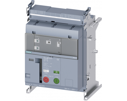 Выключатель трехполюсный, типоразмер 0, с номинальным током 630А и рабочим напряжением до 690В, переменного тока 50/60 Гц. Имеет максимальную отключающую способность ICU но 42кА при 415В и 500В. Оснащен расцепителем максимального тока ETU320, поворотным кодовым переключателем LI с сигнальным контактом срабатывания, а также дополнительными контактами RTC и 4AUX. Предусмотрена регулируемая защита L: IR 0,4-1, I: II 1-15, и регулируемая защита нейтрали. Выводы стандартизированы для корзины 3VW81.