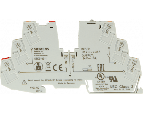 Siemens 5SK9108-1 Автоматический выключатель, 8А, DC 24V, 1 вспомогательный переключатель