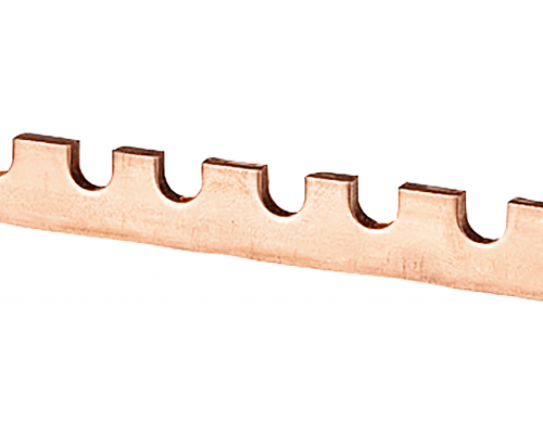 Представлена шина с клеммами вилочного типа. Данное изделие является однофазным и неизолированным. Конструкция предусматривает использование вилочных клемм для удобства и надежности подключения.