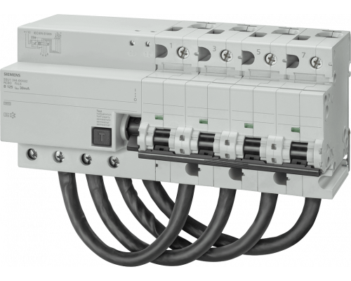 Siemens 5SU1344-0KK82 Дифференциальный автомат тип AC, 4-полюсный, 125А, IFN 30мА, 10кА, глубина установки 70 мм