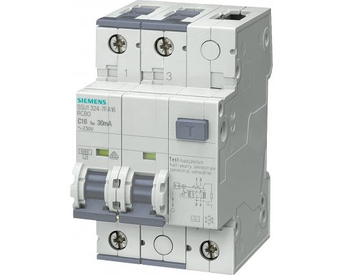 Дифференциальный автомат предназначен для защиты электроустановок от токов утечки. Устройство имеет два полюса и относится к типу A. Номинальный ток утечки составляет 30 мА, номинальный ток – 16 А. Рабочее напряжение составляет 110 Вольт переменного тока. Дифференциальный автомат способен отключить цепь при токе короткого замыкания до 10 килоампер.