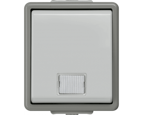 Выключатель предназначен для навесного монтажа. Обеспечивается защита IP44 от брызг. Устройство имеет одну клавишу с контрольной лампой для включения и выключения из двух мест. Номинальное напряжение составляет 250В, а номинальный ток – 10А.