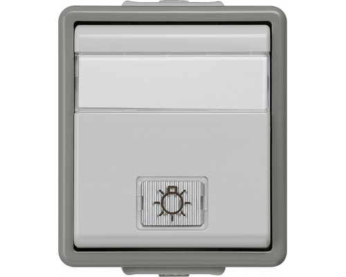 Выключатель предназначен для навесного монтажа. Обеспечивается защита IP44 от брызг. Устройство оснащено контрольной лампой и панелью для надписи. Предусмотрена возможность установки 2 клавиш, в комплекте 2 окна: прозрачное и с символом. Выключатель предназначен для включения и выключения из 2-х мест.
