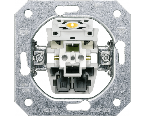 Предназначен для монтажа под штукатурку. Выключатель имеет ток 10А и напряжение 250В. Оснащен одной клавишей и фиксацией винтами. Электромеханическая часть.