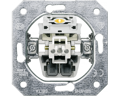 Выключатель предназначен для монтажа под штукатурку. Номинальный ток составляет 10А, напряжение – 250В. Устройство оснащено одной клавишей и контрольной лампой. Конструкция не предусматривает наличие лапок.