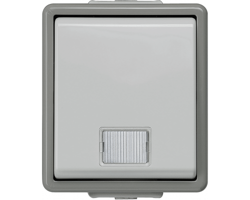 Выключатель предназначен для навесного монтажа. Обеспечивается защита IP44 от брызг. Устройство имеет контрольную лампу и одну клавишу. Номинальное напряжение составляет 250В, а номинальный ток – 10А.