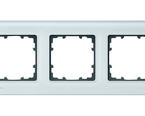 Рамка предназначена для установки в системы Delta miro. Имеет три места для установки модулей. Используется стекло кристального зеленого цвета. Габариты рамки составляют 232х90 мм. Рамка поставляется без логотипа Siemens.