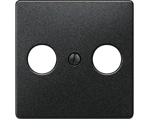 Крышка розетки выполнена в черном металлическом цвете. Размеры крышки составляют 55x55 мм. Предусмотрено два отверстия для удобства монтажа. Подходит для использования с радиочастотными, телевизионными и спутниковыми кабелями.