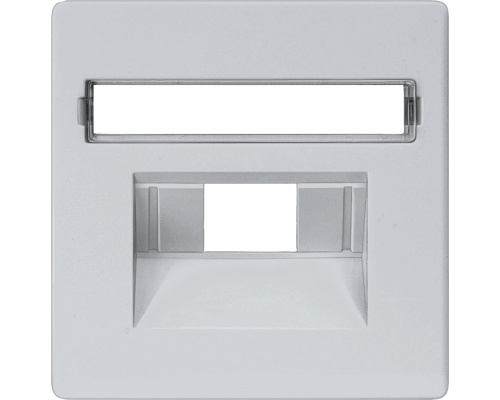 Представлена системная розетка с алюминиевой крышкой металлического цвета. Размер розетки составляет 55x55 мм. Поддерживаются категории cat.3+5 и btr cat.6. Предусмотрено поле для пометок.