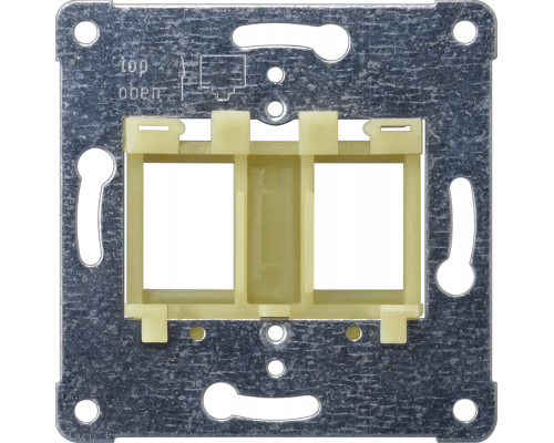 Опорная панель выполнена в желтом цвете. Предназначена для монтажа двух разъемов типа jack/plug. Обеспечивает удобство и надежность подключения соединительных элементов.