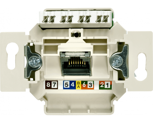 Представлена розетка для сетевых кабелей. Тип разъема - RJ45. Категория кабеля - Cat6. Используется для подключения UTP кабелей. Имеет 8 контактов. Предназначена для организации локальных сетей.