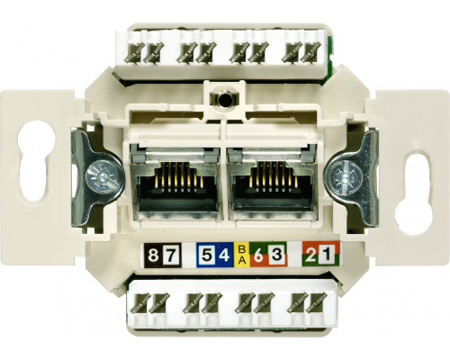 Предназначена для подключения кабеля UTP. Имеет разъемы RJ45 и поддерживает категорию Cat6. В розетке 8 полюсов, что обеспечивает надежное соединение для передачи данных. Подходит для использования в различных сетях и позволяет подключать сетевое оборудование.