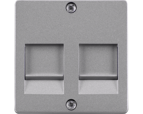 Предназначена для использования с модульными соединениями jack plug-in conn. Изготовлена из алюминия с отделкой металлического цвета. Накладка оснащена шторками для защиты от внешних воздействий и обеспечения безопасности соединения.