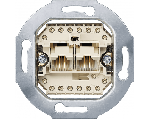 Розетка предназначена для монтажа под штукатурку. Поддерживается установка вилок rj12/11. Имеет 2 разъема rj45, соответствует категории Cat.3 и оснащена 2х8 полюсами. Электромеханическая часть предназначена для монтажа под штукатурку.