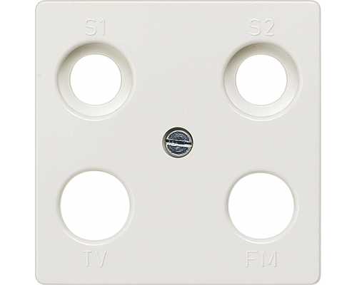 Крышка розетки выполнена в титаново-белом цвете. Предназначена для установки над розетками 2xSAT, 1xTV и 1xRF. Габариты крышки составляют 55x55 мм. Предусмотрены 4 отверстия для крепления.