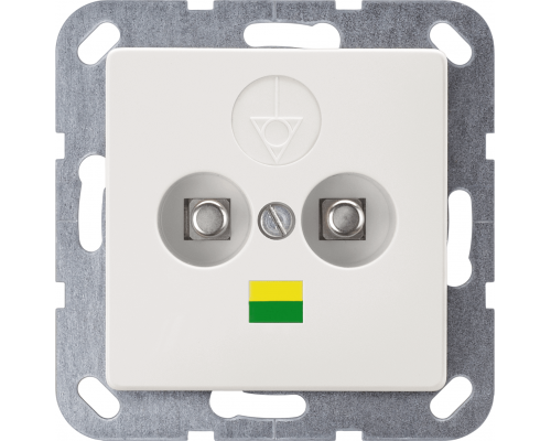 Крышка выполнена в титаново-белом цвете. Предназначена для 2-местной коаксиальной розетки. Имеет размеры 55x55 мм. Подходит для использования в системах Delta i-system.