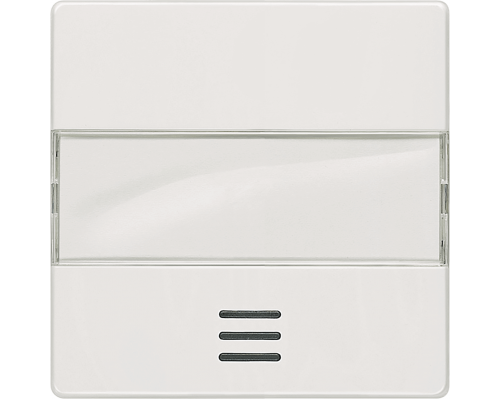Выключатель выполнен в цвете титаново-белый. Размеры составляют 55x55 мм. Предусмотрено окно и поле для надписи. Предназначен для использования в системах Delta i-system.