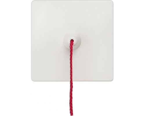 Выключатель выполнен в титаново-белом цвете. Имеет одноклавишное исполнение и оснащен веревочным приводом. Габаритные размеры составляют 55x55 мм. Предназначен для использования в системах Delta i-system.