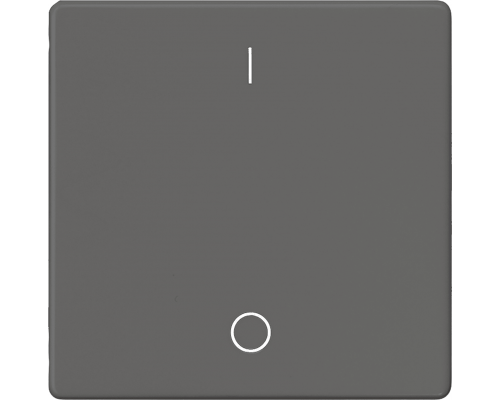 Выключатель имеет черный металлический цвет. Размеры составляют 55x55 мм. Предусмотрены символы o/i. Предназначен для использования в системах Delta i-system.