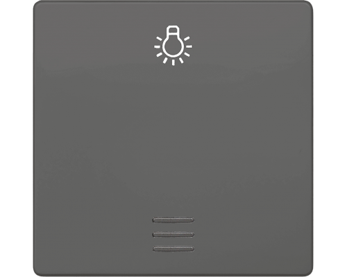 Выключатель выполнен в черном цвете и имеет металлический корпус. Размеры составляют 55x55 мм. Предусмотрено окно с символом "свет". Выключатель имеет одну клавишу.