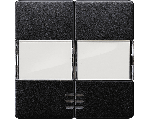 Выключатель выполнен в черном цвете. Материал корпуса – металл. Размеры составляют 55x55 мм. Предусмотрено окно и поле для надписи. Количество клавиш – две.