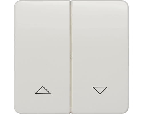 Выключатель Delta profil выполнен в титаново-белом цвете. Имеет два клавишных элемента с символами, обозначающими функции "вверх" и "вниз". Предназначен для управления устройствами, требующими двух независимых команд.