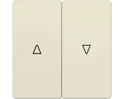 Выключатель предназначен для управления электрическими жалюзи. Имеет два клавишных элемента с символами, обозначающими направление движения жалюзи – "вверх" и "вниз". Размеры выключателя составляют 55x55 мм. Выключатель имеет белый цвет.