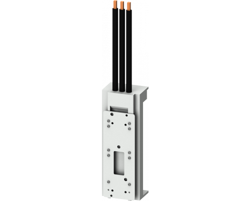Адаптер предназначен для использования в питающих цепях. Совместим с автоматическими выключателями Sirius 3R размера S3. Имеет выходной проводник снизу. Ширина шины составляет 60 мм, а ширина проводников – 5/10 мм или TT-профиль. Номинальный ток по стандарту UL – 80А при напряжении 600В, по стандарту IEC – 100А при напряжении 690В. Длина адаптера – 215 мм.