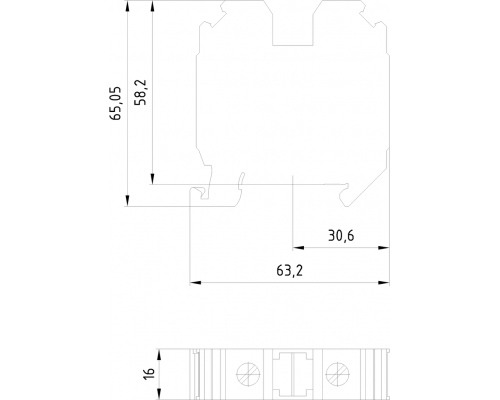 Клемма предназначена для соединения с заземляющим проводником PE. Используются винтовые клеммы. Размер клеммы составляет 35,0 мм², ширина – 16,0 мм. Цвет клеммы – синий.