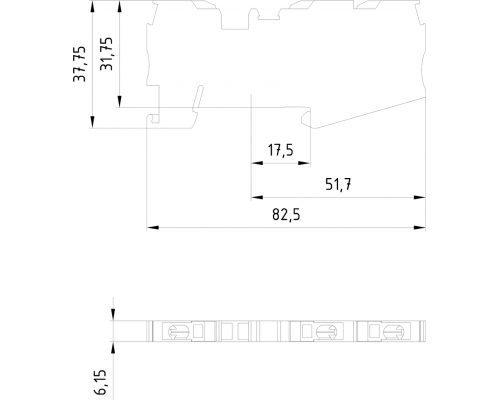 Клеммная колодка имеет быстроразъемное соединение и предназначена для проходных соединений. Обеспечивает возможность подключения трех точек. Поддерживается сечение провода от 0,5 до 2,5 мм². Ширина изделия составляет 6,2 мм. Корпус колодки окрашен в серый цвет.