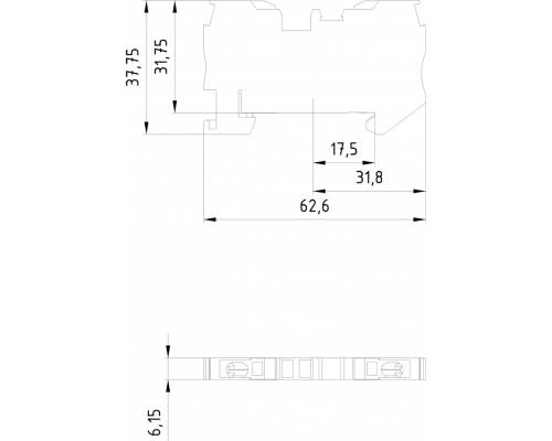Клемма оснащена быстроразъемным соединением. Поддерживается сечение провода от 0,5 до 2,5 мм². Ширина клеммы составляет 6,2 мм. Цвет клеммы – зелено-желтый.