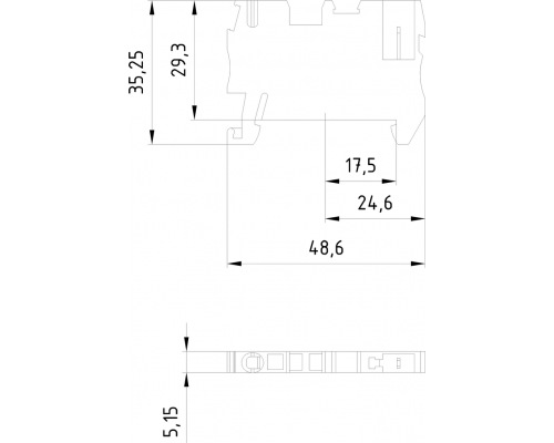 Представлена гибридная проходная клеммная колодка. Используются втычные и пружинные клеммы. Поддерживается сечение от 0,08 до 2,5 мм². Ширина изделия составляет 5,2 мм. Цвет колодки – синий.