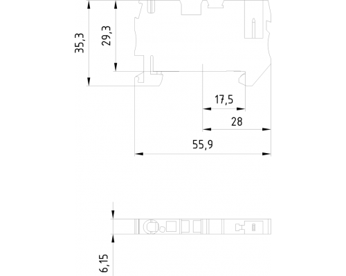 Клемма представляет собой гибридную конструкцию с втычными и пружинными клеммами. Поддерживается сечение провода от 0,08 до 4 мм². Ширина клеммы составляет 6,2 мм. Цвет изоляции – зелено-желтый.
