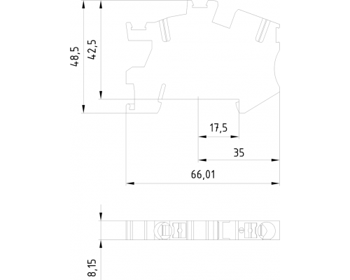 Клемма предназначена для соединения проводов. Сечение провода – 6 мм². Ширина клеммы составляет 8,2 мм. Цвет изделия – синий.