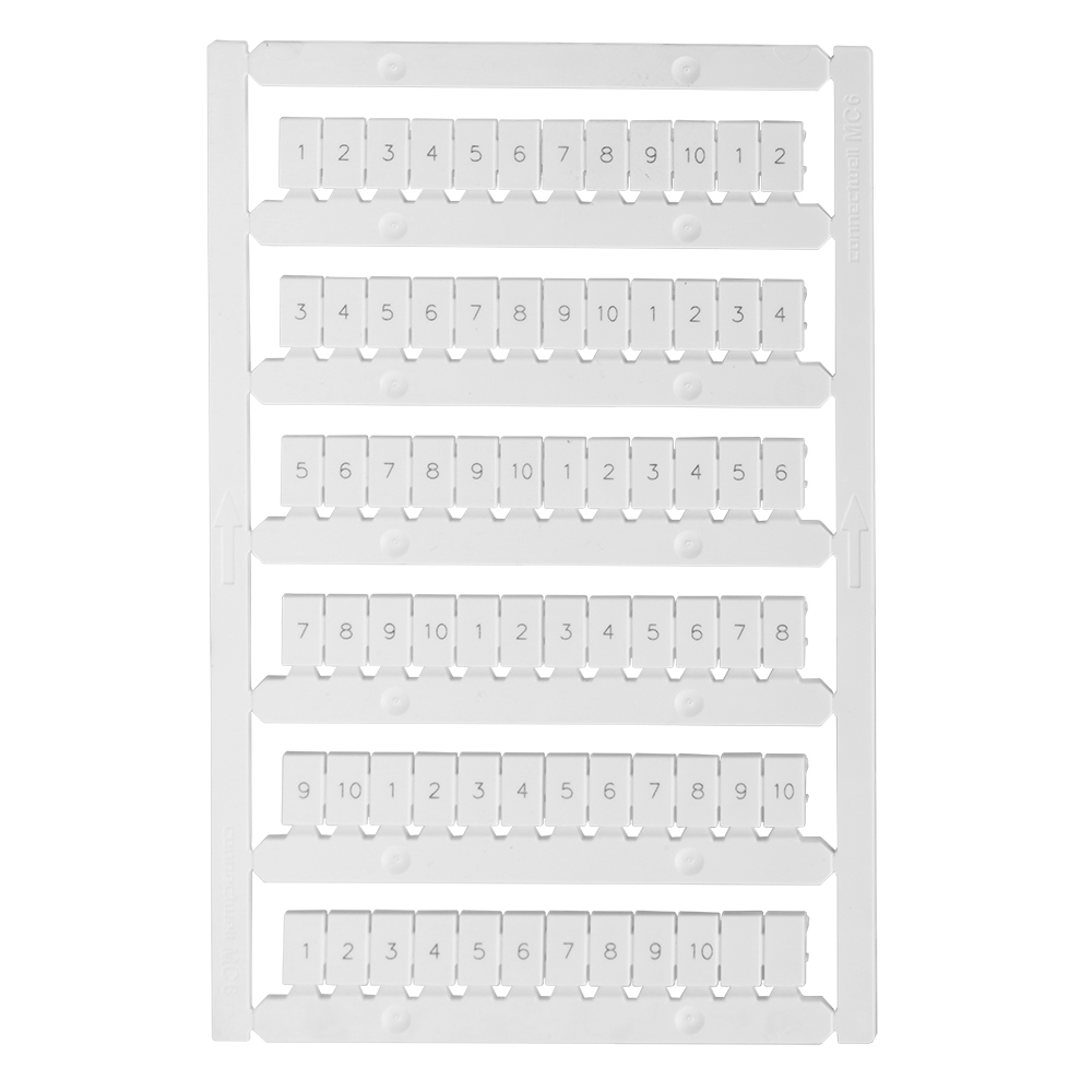 Горизонтальная маркировка шириной 6 мм с напечатанными цифрами от 1-го до 10-ти, 72 шильдика.