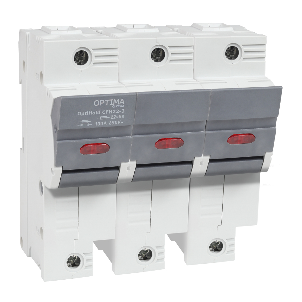 Предохранитель-разъединитель модульный OptiHold CFH22-100-3 на номинальный ток 100А, трехполюсного исполнения.Предохранители-разъединители модульные серии OptiHold CFH предназначен для установки вставок плавких цилиндрических, пропускания номинальных токов, включения и отключения без нагрузки электрических цепей номинальным напряжением до 690 В переменного тока номинальной частоты 50 и 60 Гц в устройствах распределения электрической энергии, эксплуатация которых должна осуществляться специально обученным персоналом.Аппараты соответствуют ГОСТ IEC 60947-1-2017, ГОСТ IEC 60947-3-2032