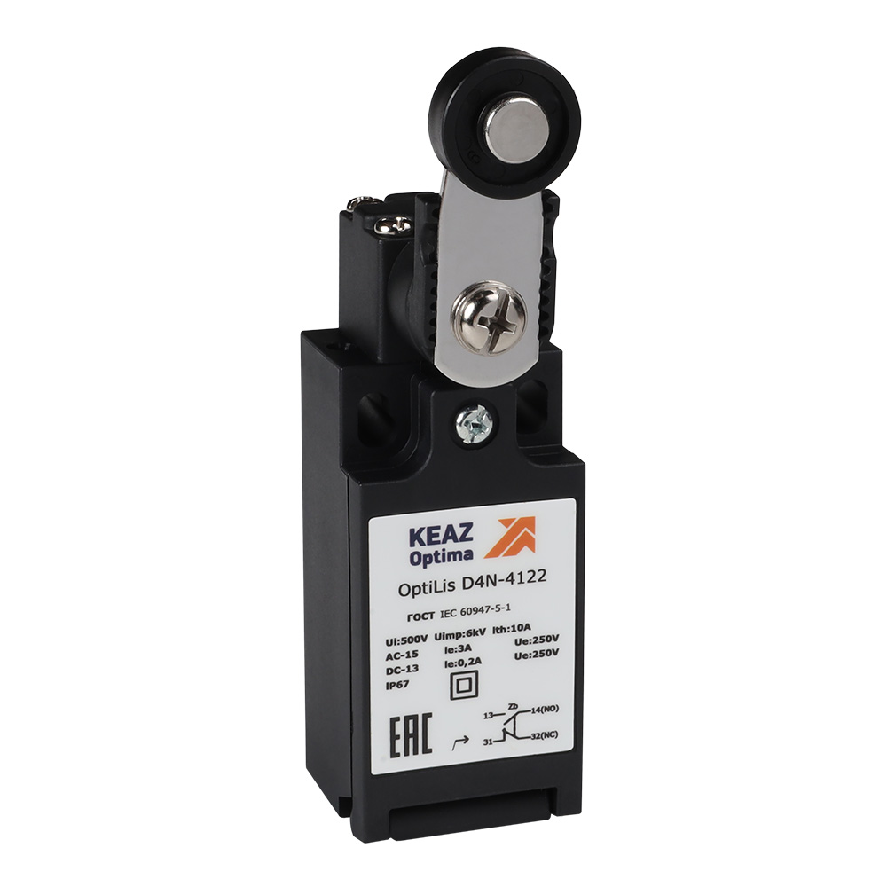 KEAZ Выключатель концевой OptiLiS D4N-4122 рычаг металлический с роликом пластиковым EN 50047 XCKN2118P20