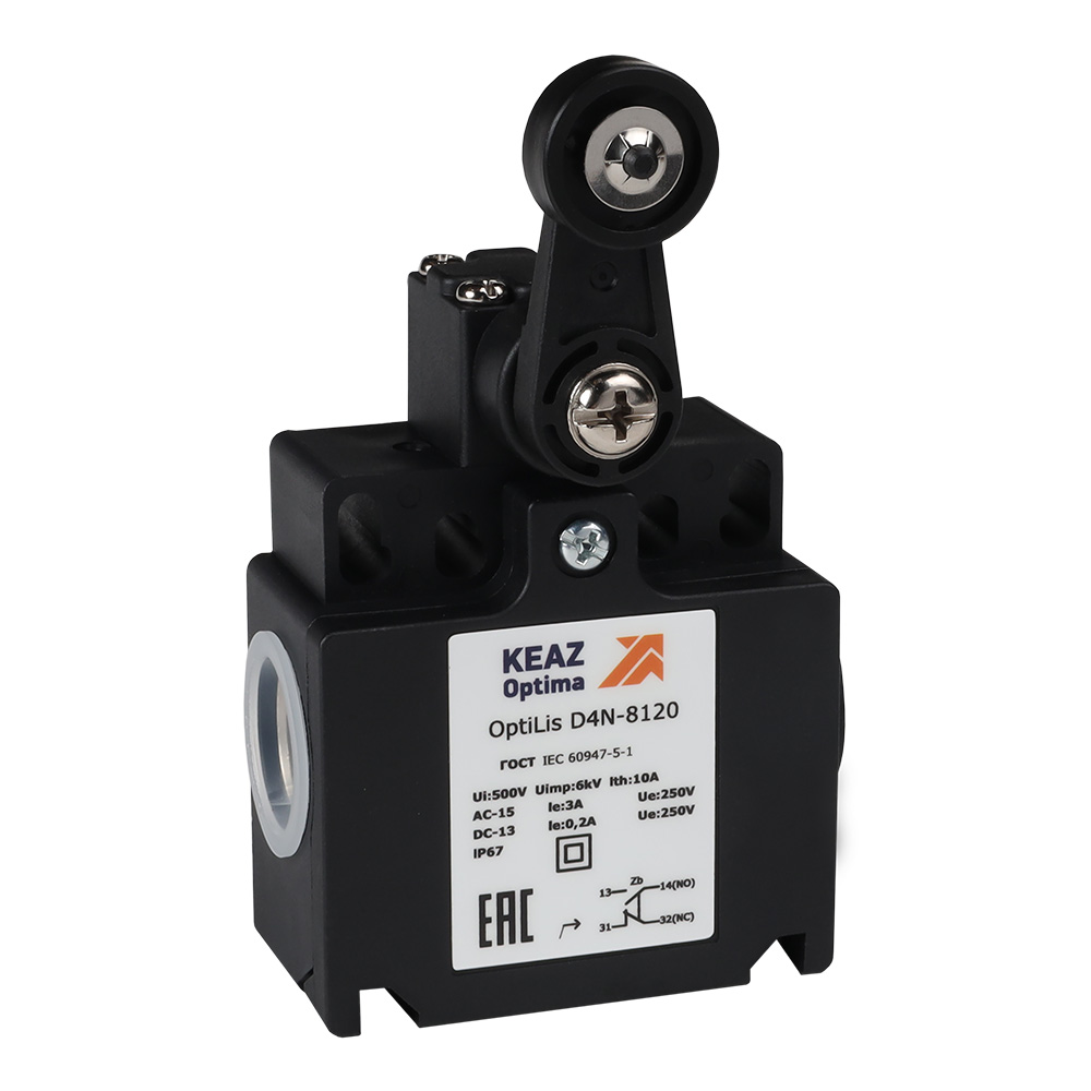 KEAZ Выключатель концевой OptiLiS D4N-8120 рычаг пластиковый с роликом пластиковым EN 50047 XCKT2118P16