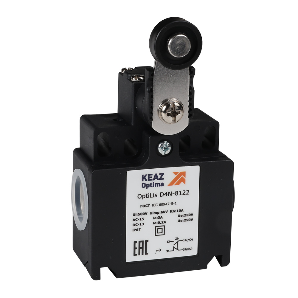 KEAZ Выключатель концевой OptiLiS D4N-8122 рычаг металлический с роликом пластиковым EN 50047 XCKT2118P16