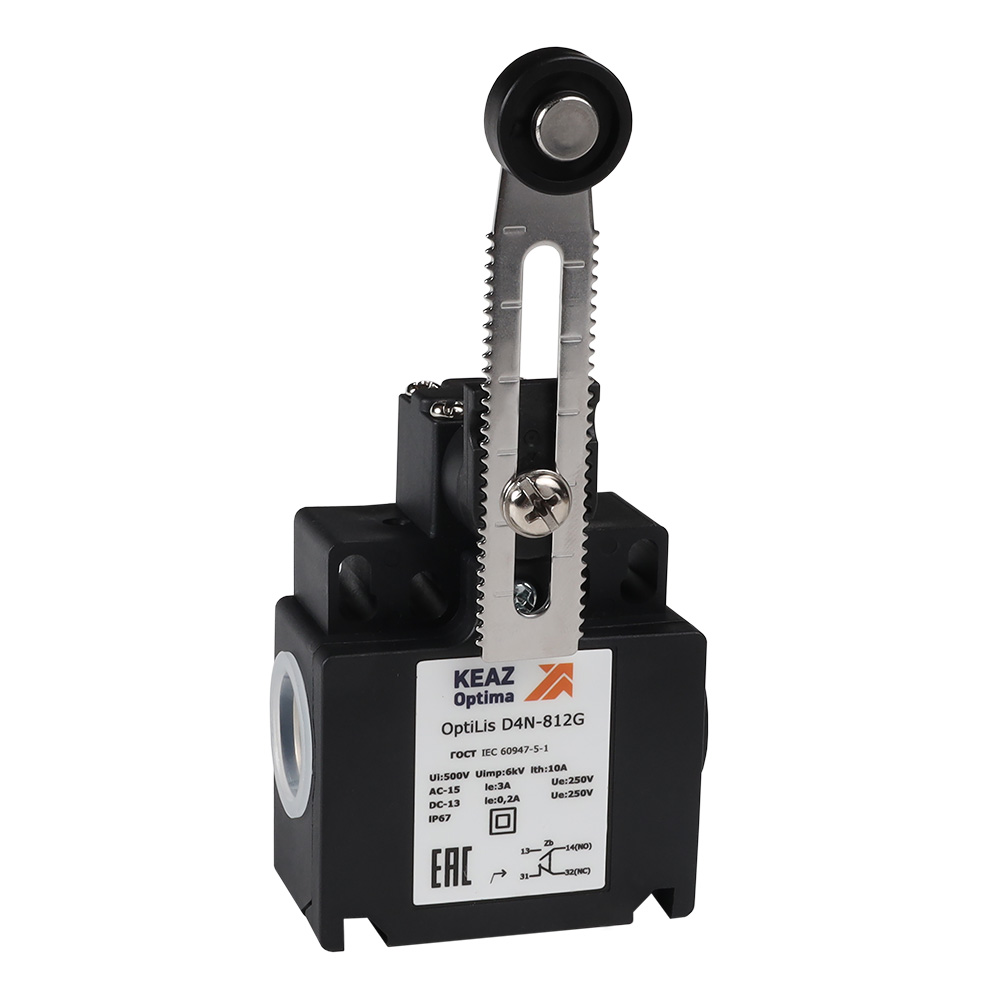 KEAZ Выключатель концевой OptiLiS D4N-812G рычаг регулируемый с роликом пластиковым EN 50047 XCKT2145P16